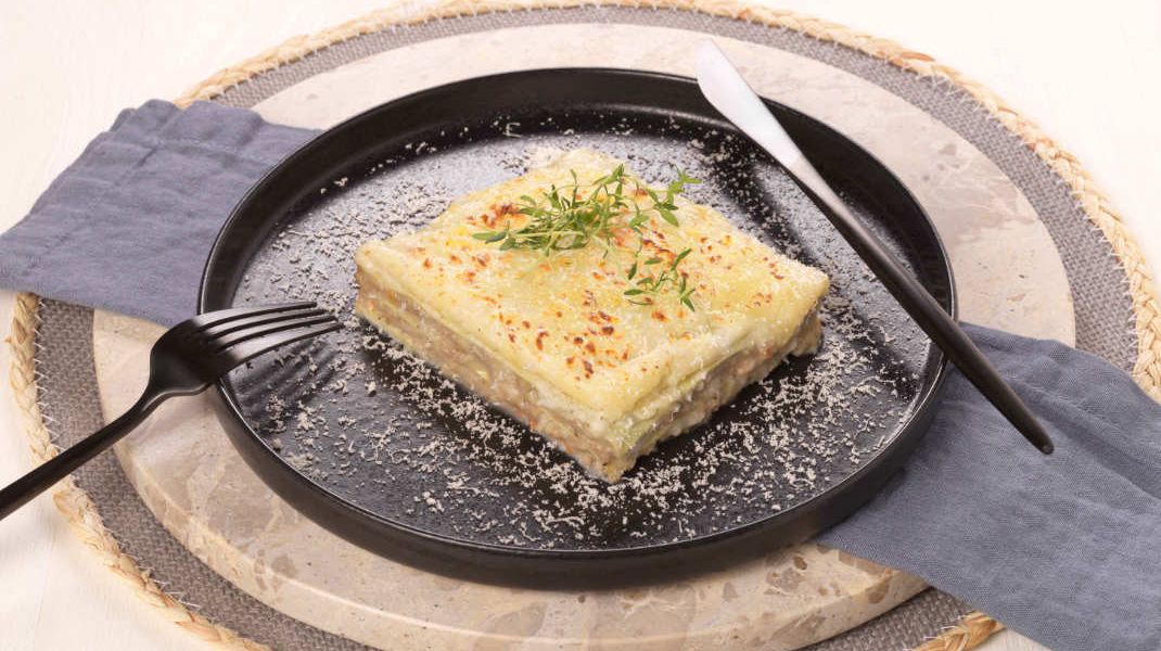 Diese Lasagne-Variation überzeugt mit zartem Kalbfleisch und feinem Gemüse in einer cremigen Sahnesoße. Dezente Kräuternoten und ein Schuss Weißwein runden die Komposition harmonisch ab.